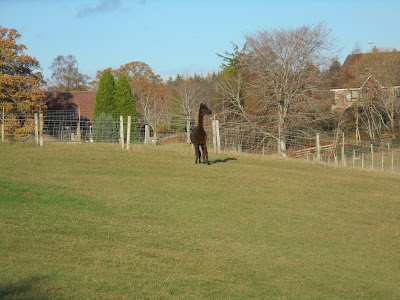 Fidget demonstrates the correct way to eat haylage! Fyta is at the rear and the boys appear happier now that the mist has lifted. |
